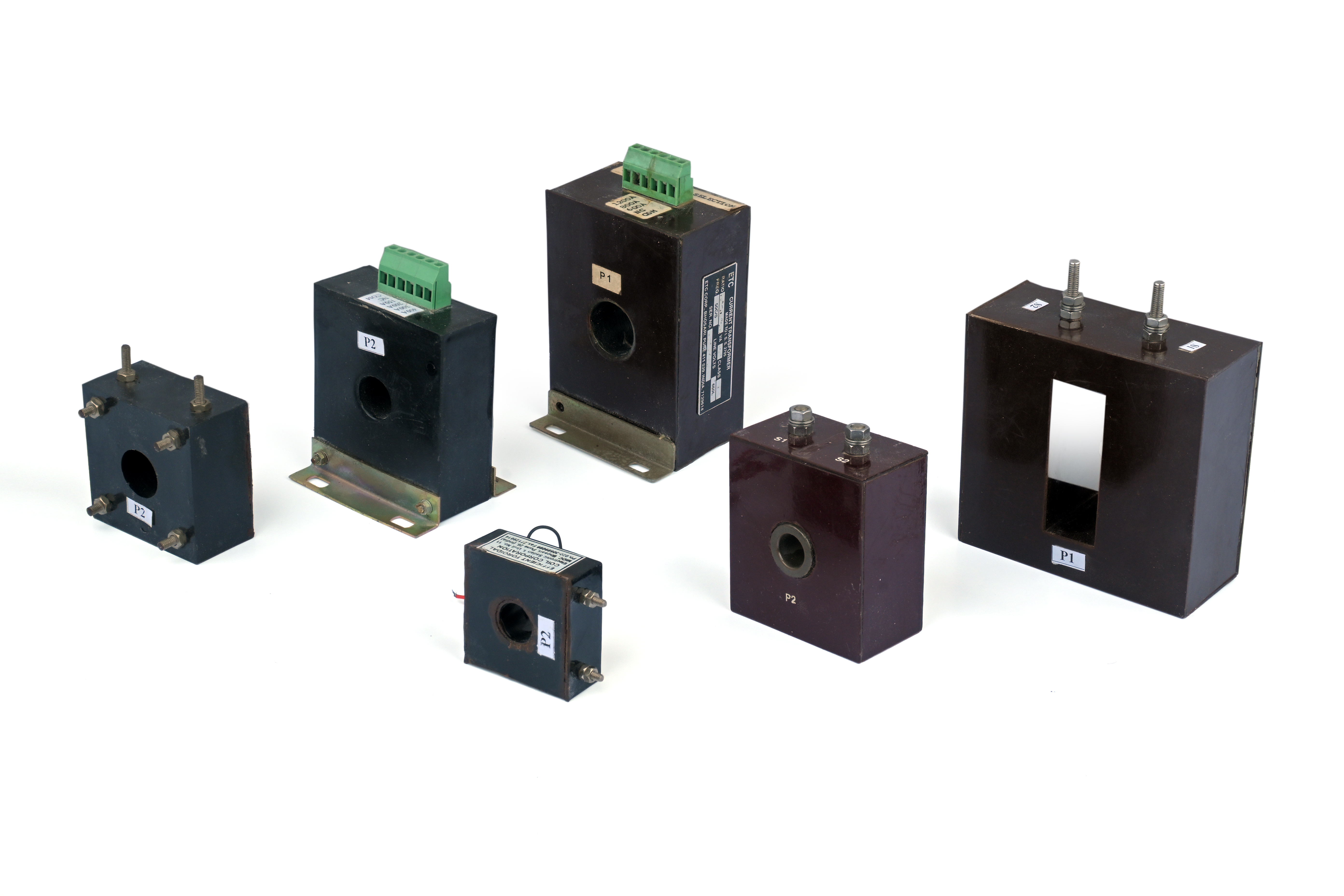 Our standard range covers the most common current ratios from 50/5A to 2000/5A. Metering class 0.5 accuracy for revenue-grade measurement, and protection class 1.0 for relay circuits. All units carry ETCC labelling with full ratio and burden specifications.